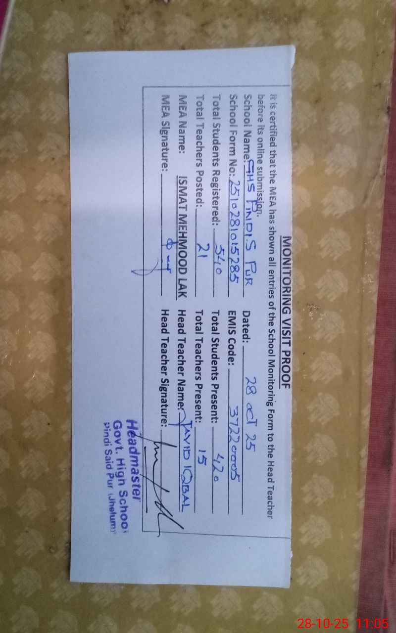 | EMIS Code: 37220005 | Name of School: GHS PINDI SAID PUR | |||