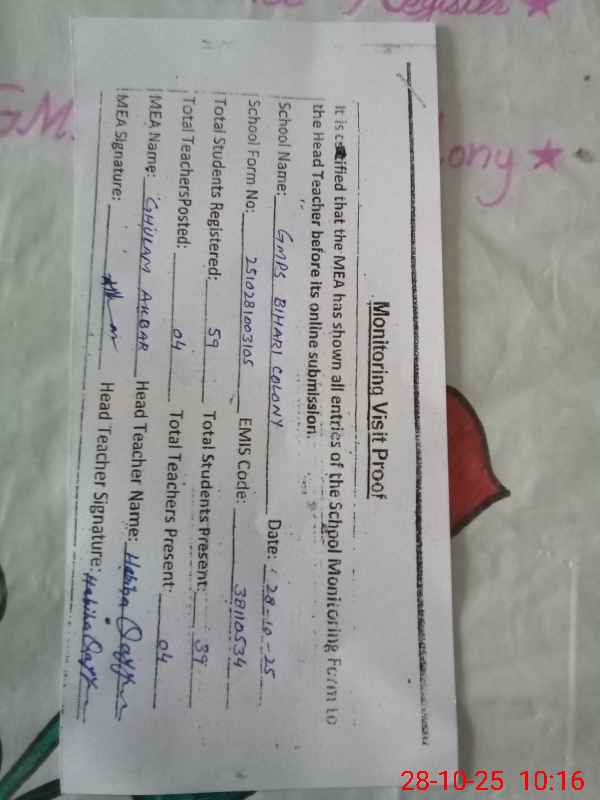 | EMIS Code: 38110534 | Name of School: GMPS BIHARI COLONY | |||