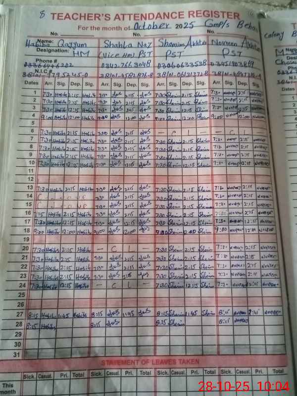 | Name: Ha**** Qa**** Designation: (School Headmaster's/Headmistress's) PST Phone/Cell Number: 03**** |