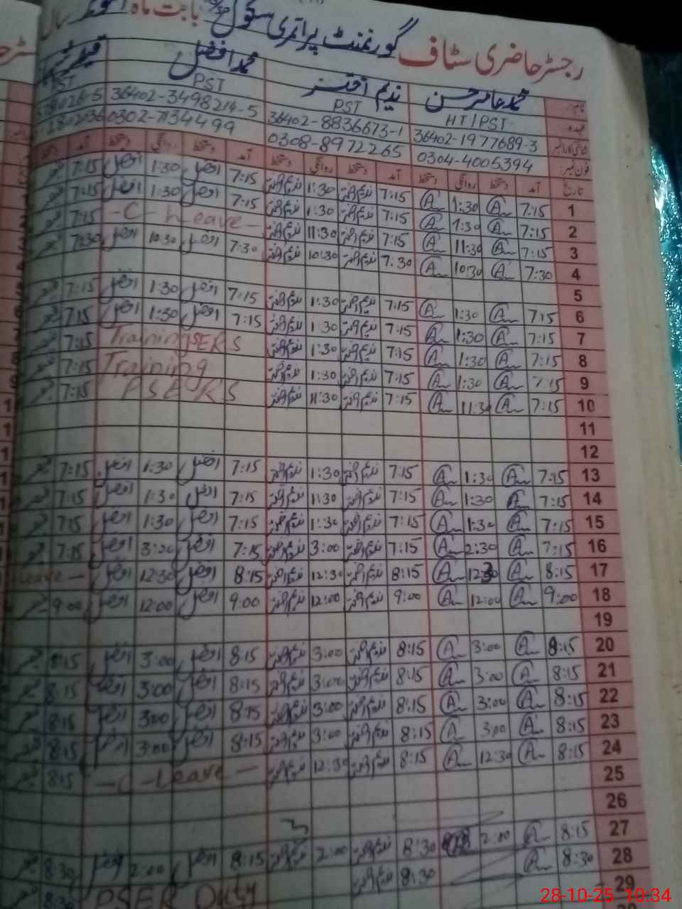 | CNIC | Full Name | Designation | R/C | Absence During Last Calender Month |