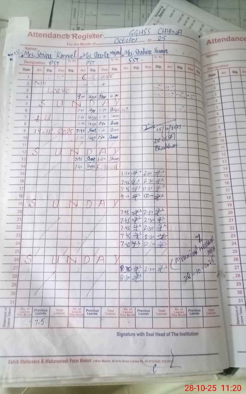| 38**** | Hu**** Yo**** | SST | Regular | 0 | 0 | 0 | 0 | 0 | 0 | 0 | 0 | 0 | Absent (Un-Authorized) |