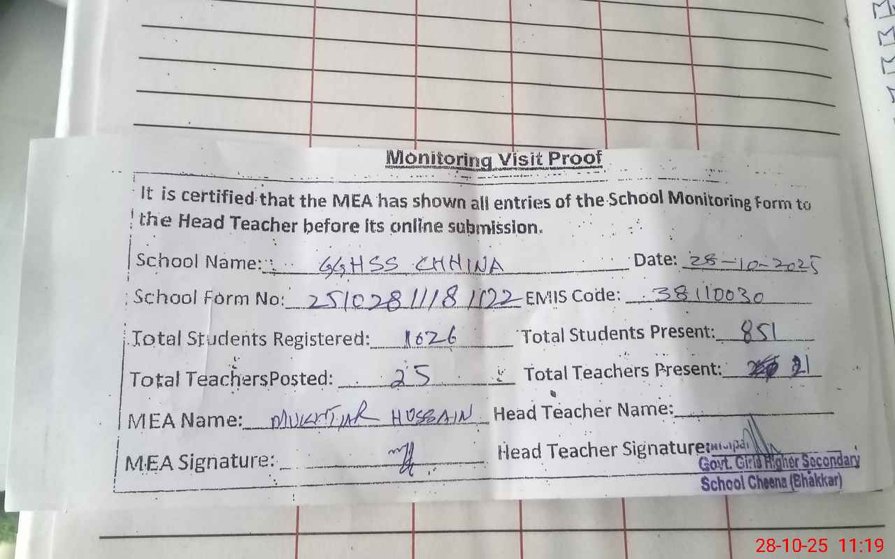 | EMIS Code: 38110030 | Name of School: GGHSS CHHINA | |||