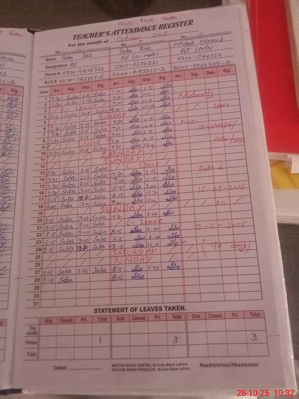 | 34**** | Mi**** Mu**** | PST | Regular | 0 | 0 | 0 | 0 | 0 | 0 | 0 | 0 | 0 | Maternity |