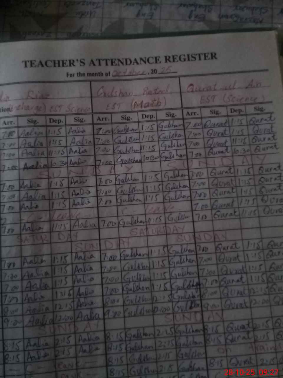 | 38**** | Qu**** UlAi**** | 3 | 1 | 0 | 0 | 0 | 0 | 0 | 0 | 0 | 0 | 0 | Absent (Un-Authorized) |