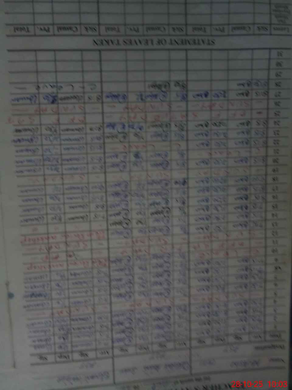 | Leave | Duty | Absent | Maternity | Medical | Ex- Pak |