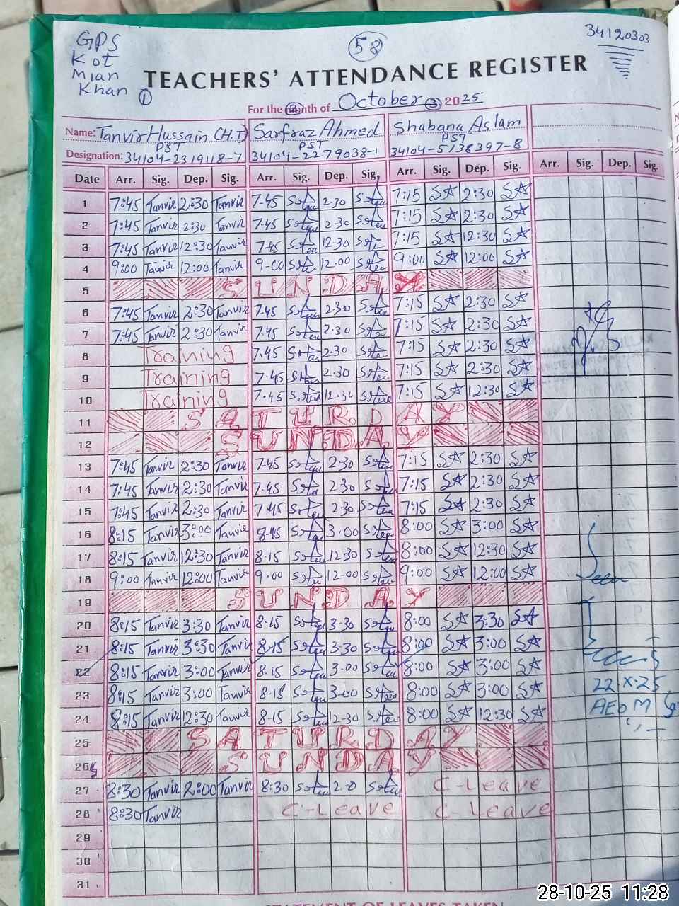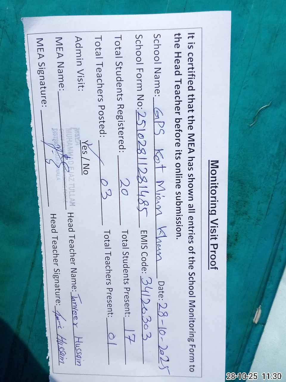 | EMIS Code: 34120303 | Name of School: GPS KOT MIAN KHAN | |||