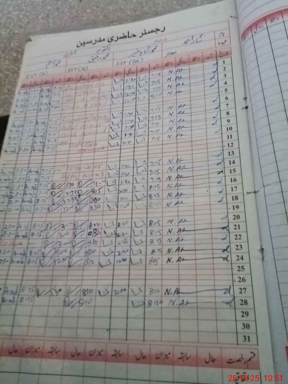 | CNIC | Full Name | Designation | R/C | Absence During Last Calender Month |