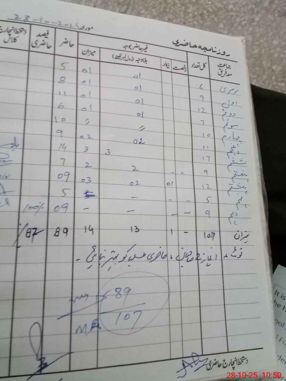 | Total Students Present | 0 | 0 | 5 | 8 | 11 | 6 | 10 | 9 | 14 | 7 | 9 | 5 | 5 | 89 | ||