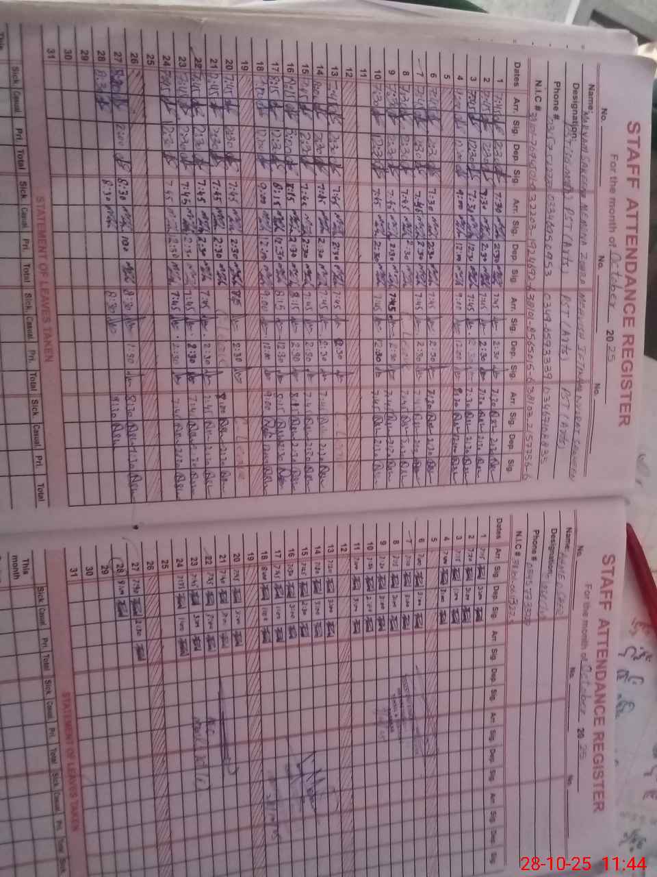 | CNIC | Full Name | Designation | R/C | Absence During Last Calender Month |