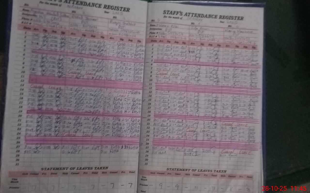| 37**** | Sa**** | NAIB QASID | 0 | 0 | 0 | 0 | 0 | 0 | 0 | 0 | 0 | Absent (Un-Authorized) | |