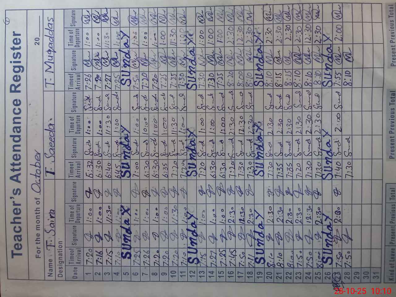 | CNIC | Full Name | Designation | R/C | Absence During Last Calender Month |