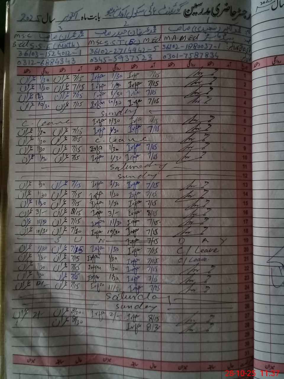 | 36**** | Sy**** Fa**** Ab**** Ri**** | JC | Regular | 0 | 0 | 30 | 0 | 0 | 0 | 0 | 0 | 0 | Absent (Un-Authorized) |