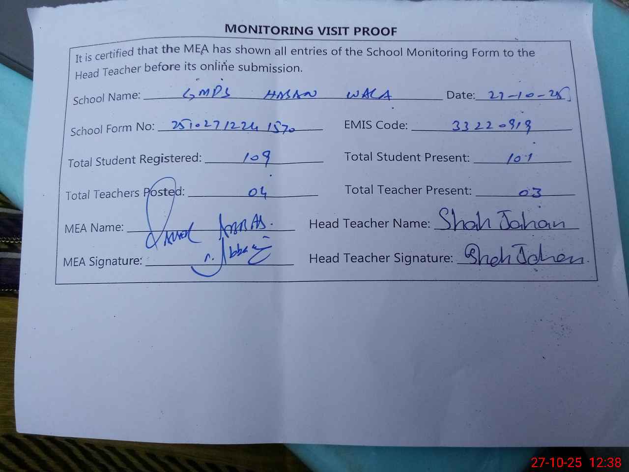 | EMIS Code: 33220919 | Name of School: GMPS HASAN WALA | |||