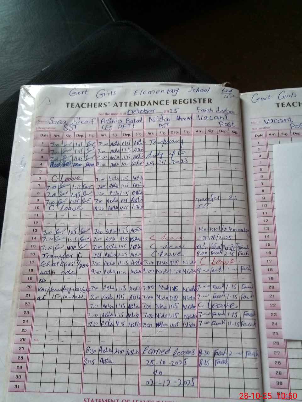 | Remarks (Use Separate Page if Required): 5th class students of this school has passed out from school Shagufta Rasheed est cnic 3620161151272 has expired on 04 February 2025 but her name is present in teachers list | |||||