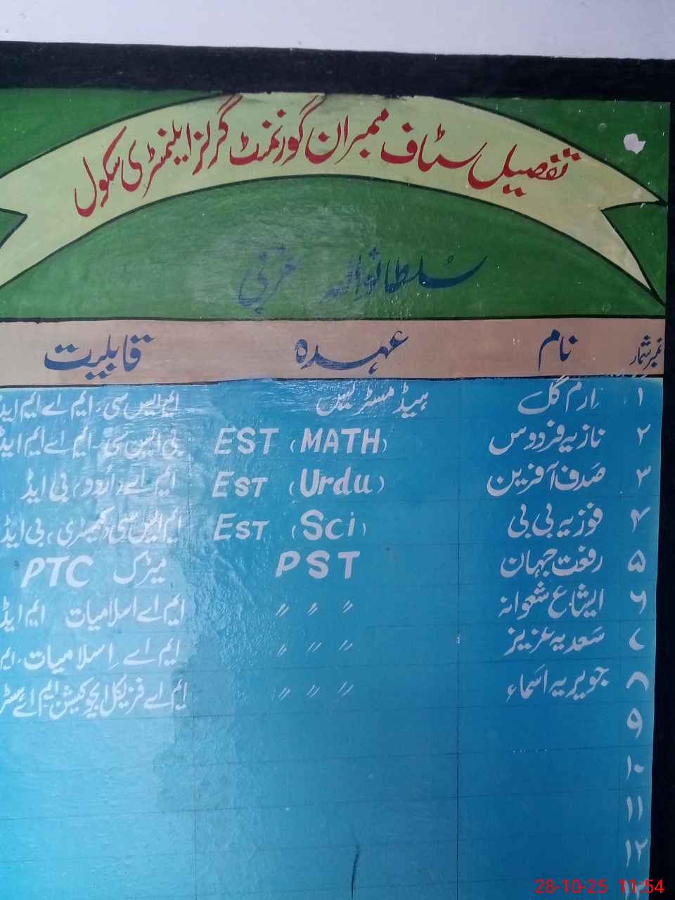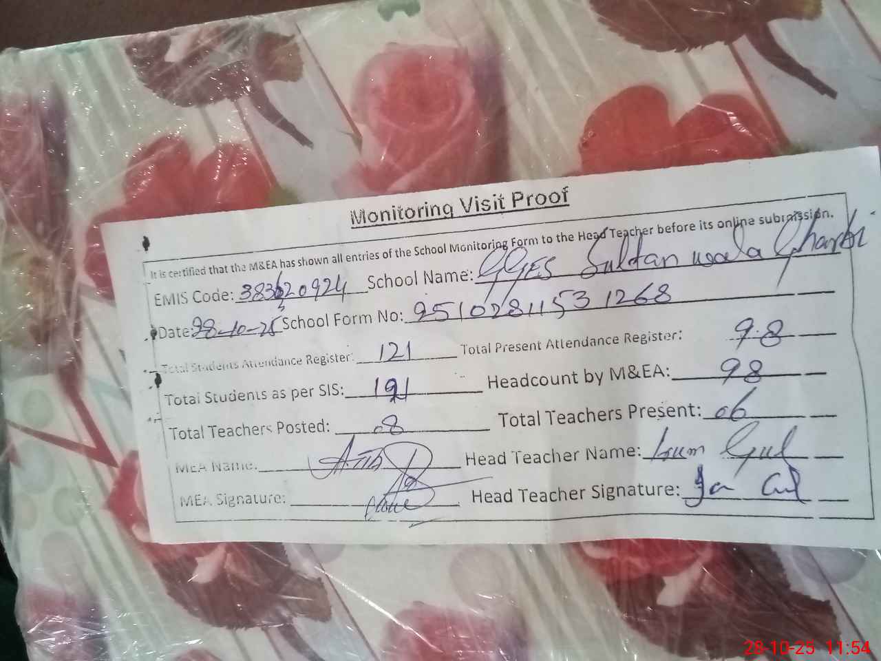 | EMIS Code: 38320924 | Name of School: GGES SULTAN WALA GHARBI | |||