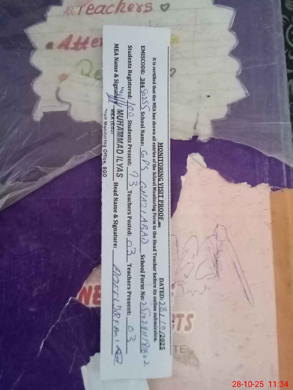 | EMIS Code: 38450255 | Name of School: GPS GHAZI ABAD | |||