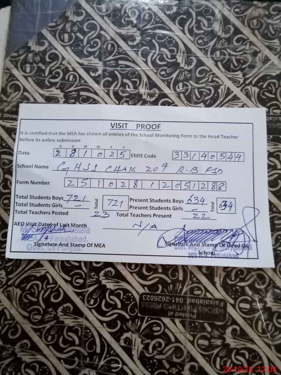 | Certified that this School was Inspected by the Undersigned MEA/DMO Today and the Information Stated Above is as Per Record. | |||||