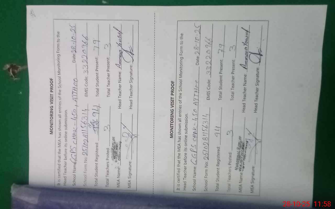 | EMIS Code: 33220966 | Name of School: GGPS CHAK 450 ATTHOO | |||