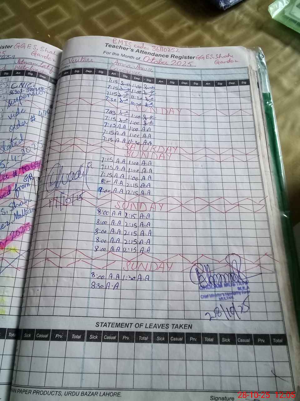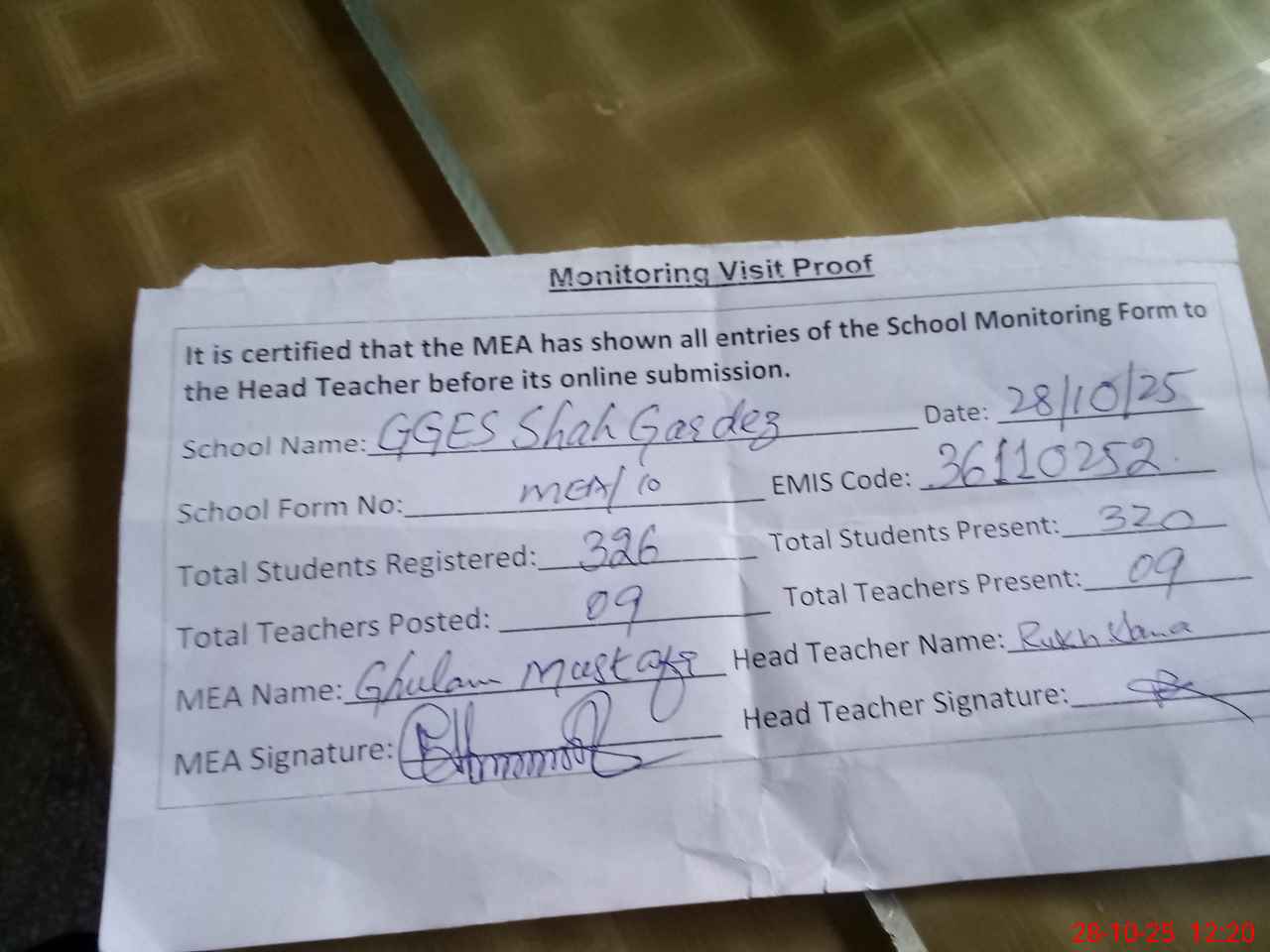 | EMIS Code: 36110252 | Name of School: GGES SHAH GARDEZ MULTAN | |||