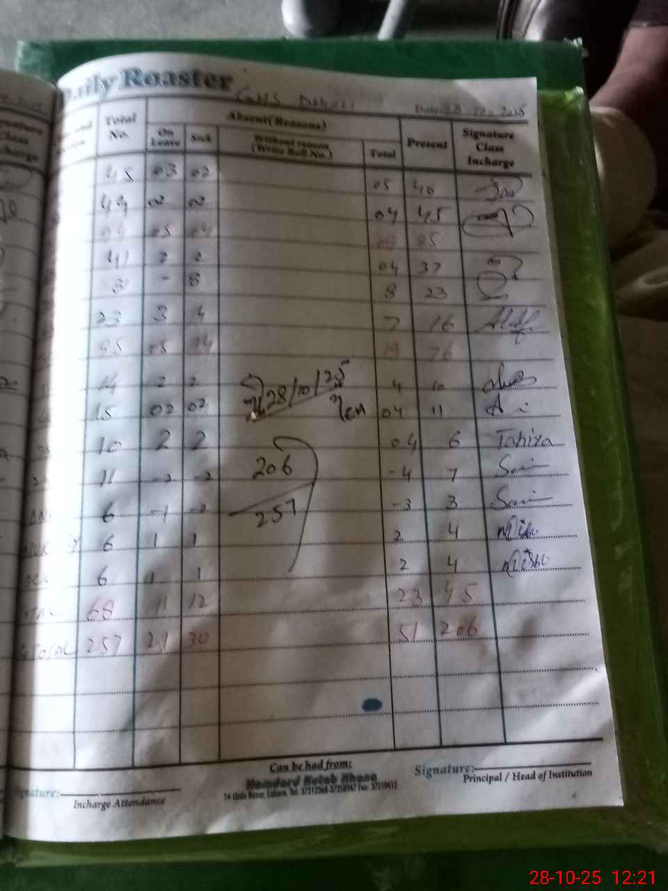 | Total Students Present | 4 | 0 | 4 | 3 | 7 | 6 | 11 | 10 | 16 | 23 | 37 | 45 | 40 | 206 | ||
