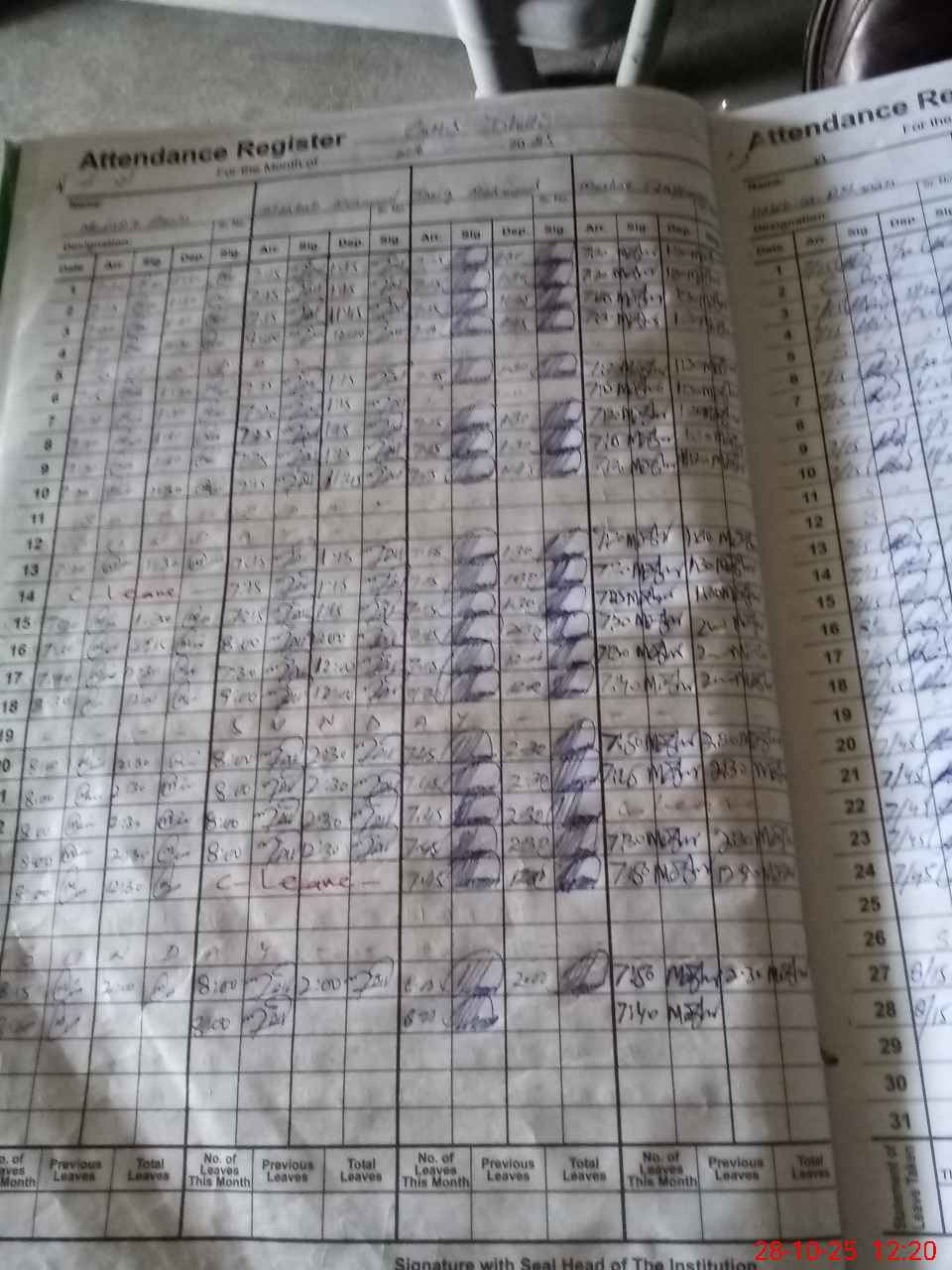 | CNIC | Full Name | Designation | R/C | Absence During Last Calender Month |