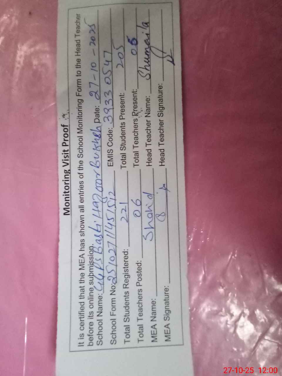 | Certified that this School was Inspected by the Undersigned MEA/DMO Today and the Information Stated Above is as Per Record. | |||||