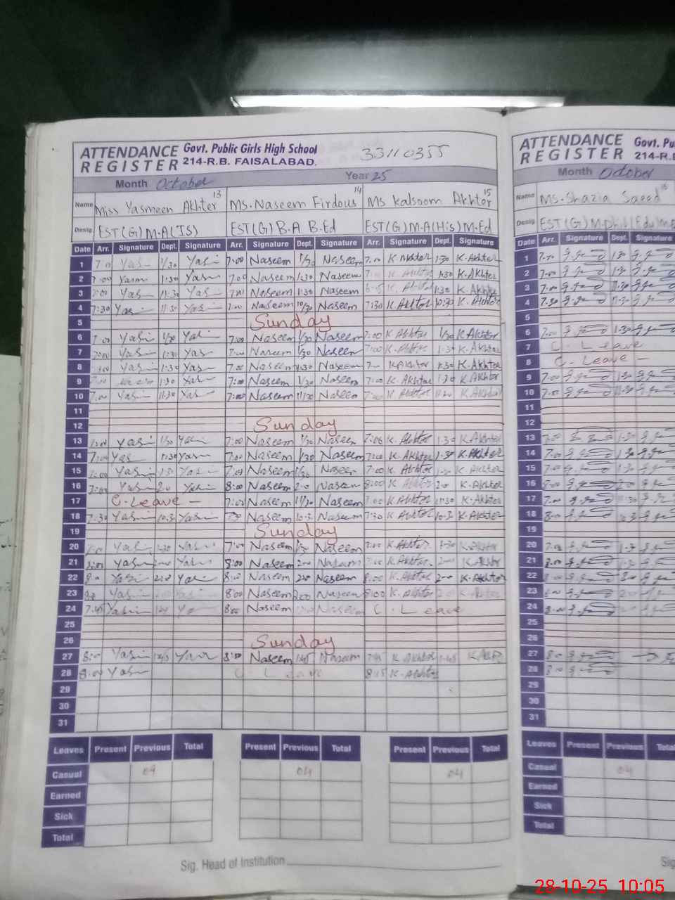 | Leave | Duty | Absent | Maternity | Medical | Ex- Pak |