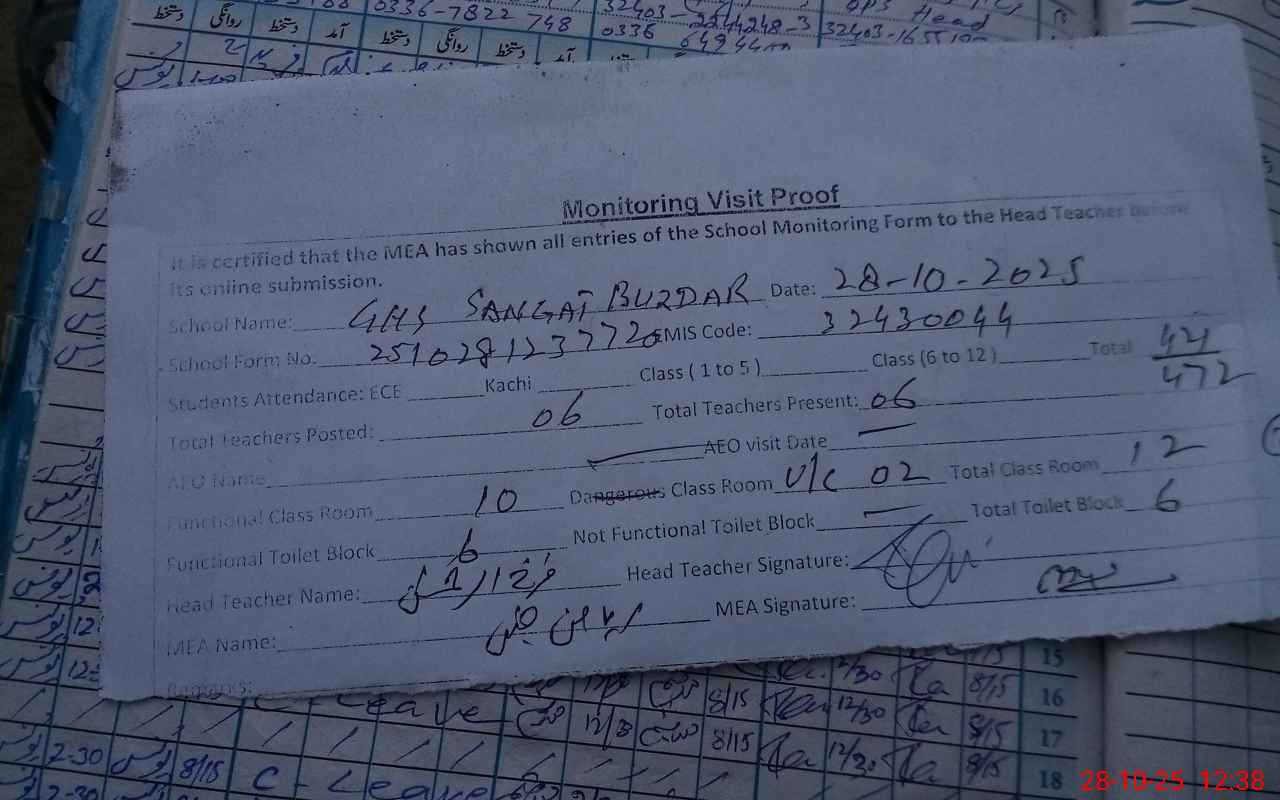 | EMIS Code: 32430044 | Name of School: GHS SANGAT BUZDAR | |||