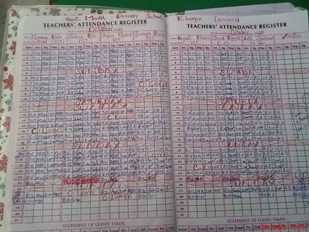 | EMIS Code: 36120228 | Name of School: GMPS KHAIR PUR SHUJABAD | |||