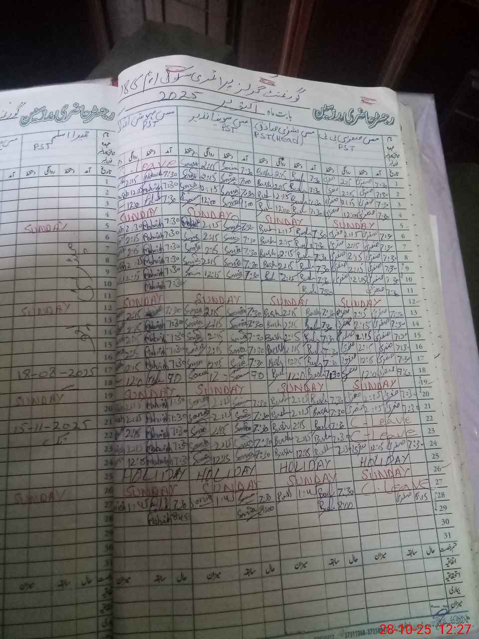 | Leave | Duty | Absent | Maternity | Medical | Ex- Pak |