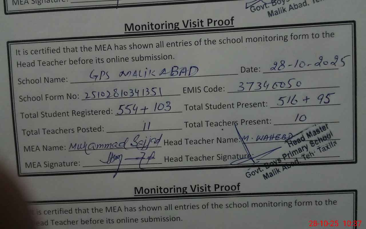 | EMIS Code: 37340050 | Name of School: GPS MALIK ABAD | |||