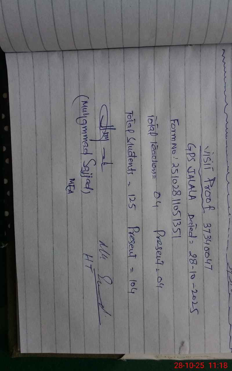 | EMIS Code: 37340047 | Name of School: GPS JALALA | |||