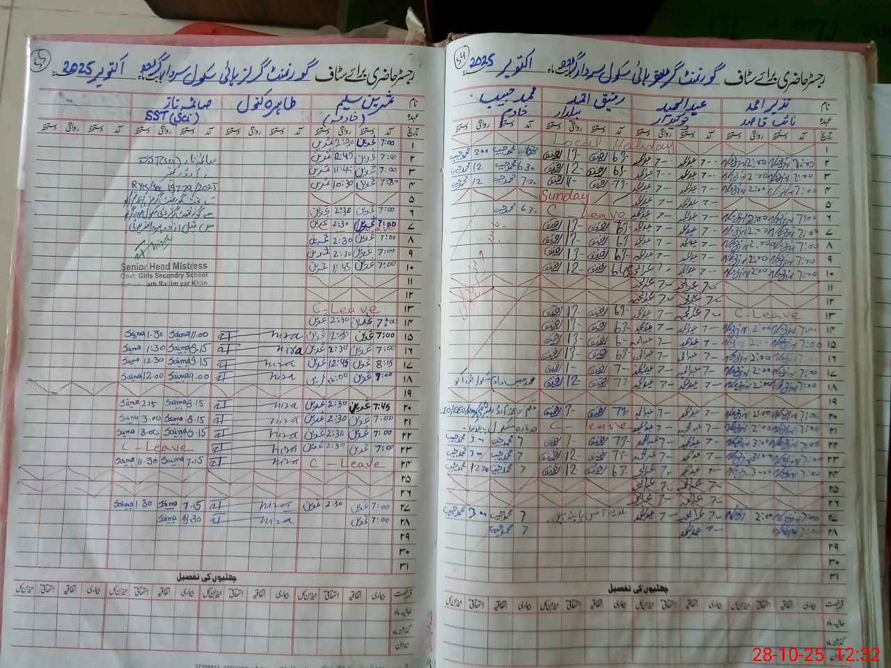 | CNIC | Full Name | Designation | R/C | Absence During Last Calender Month |