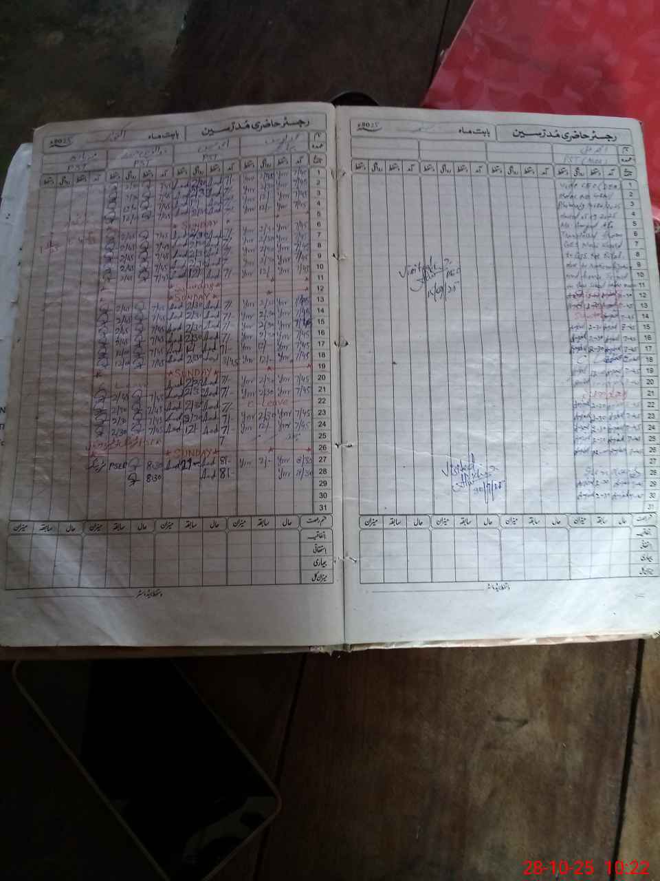 | CNIC | Full Name | Designation | R/C | Absence During Last Calender Month |
