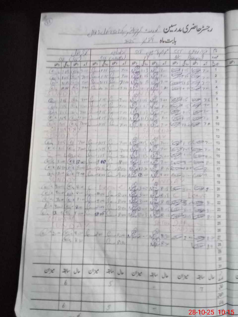 | CNIC | Full Name | Designation | R/C | Absence During Last Calender Month |