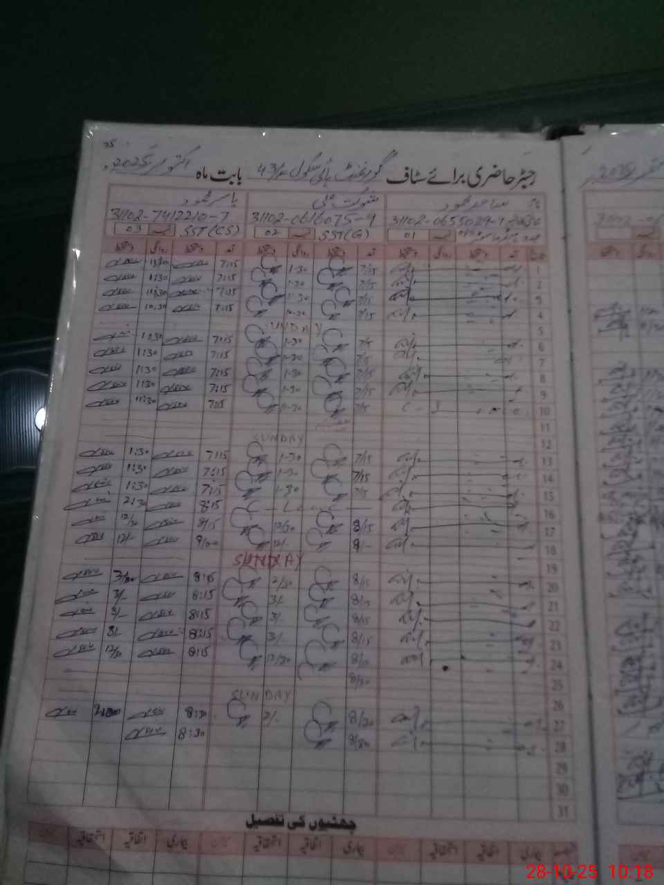| CNIC | Full Name | Designation | R/C | Absence During Last Calender Month |