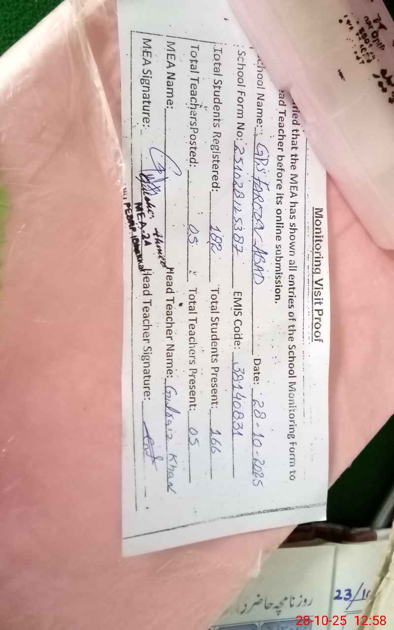 | EMIS Code: 38140831 | Name of School: GPS FAROOQ ABAD | |||