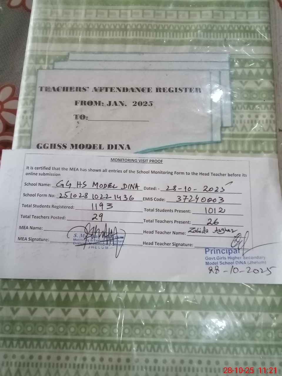 | Attendance Register | Head Teacher | MEA with School | Visit Proof |