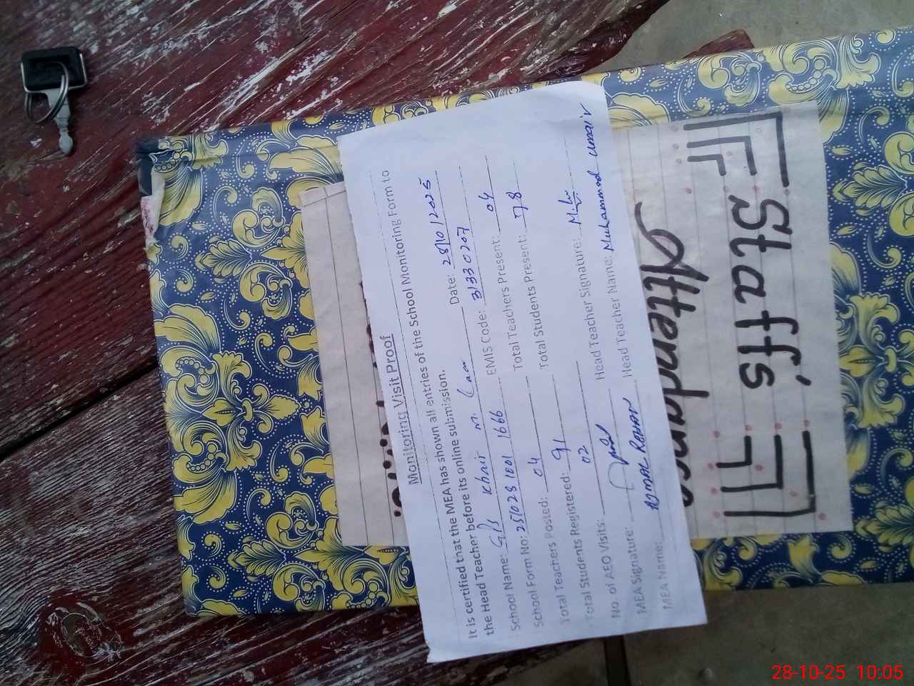 | Attendance Register | Head Teacher | MEA with School | Visit Proof |