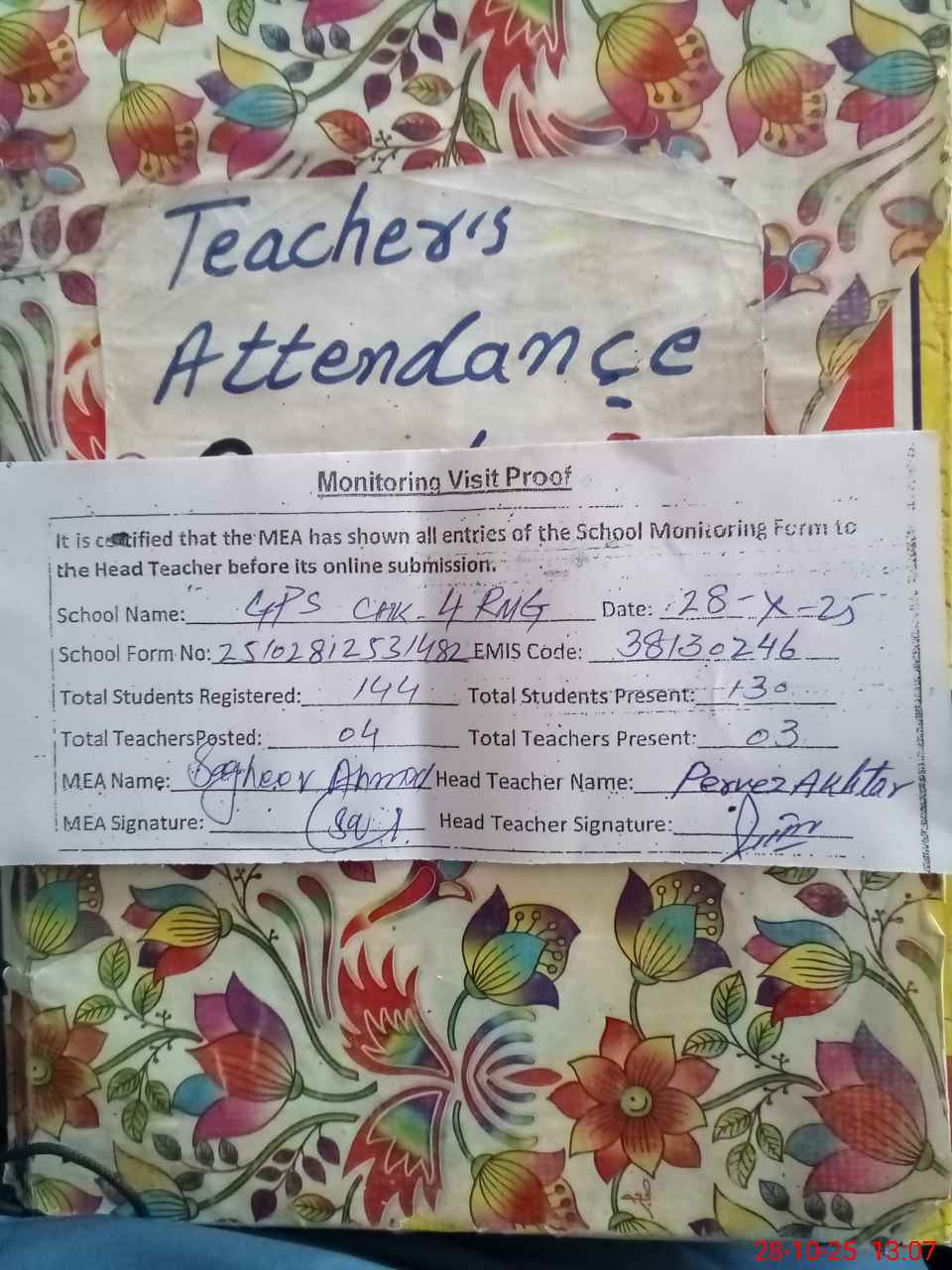 | EMIS Code: 38130246 | Name of School: GPS CHAK NO. 4 RMG | |||