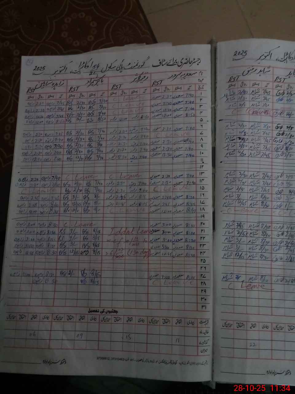 | Leave | Duty | Absent | Maternity | Medical | Ex- Pak |