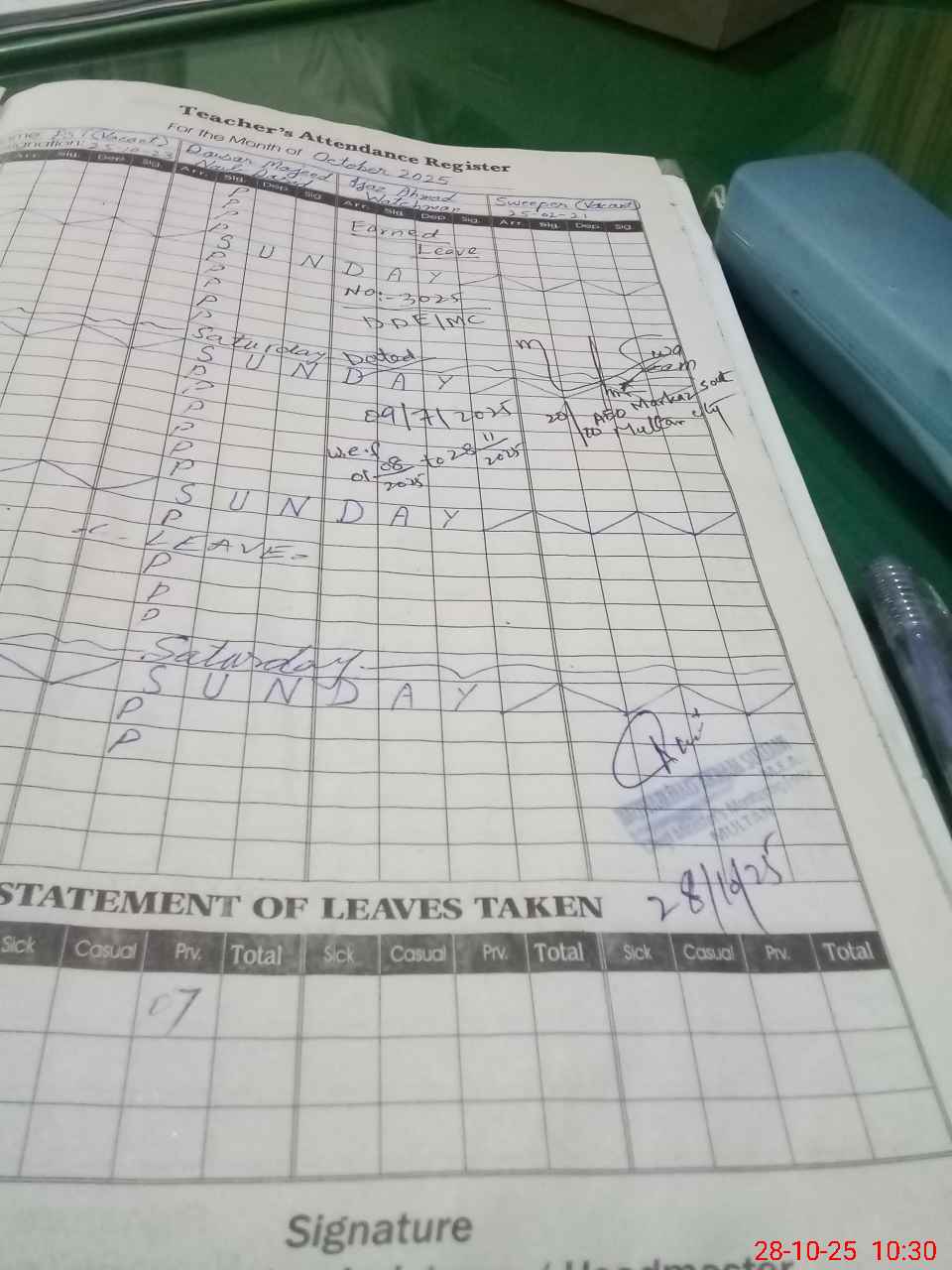 | Leave | Duty | Absent | Maternity | Medical | Ex- Pak |
