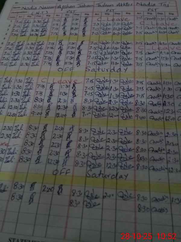 | Leave | Duty | Absent | Maternity | Medical | Ex- Pak |