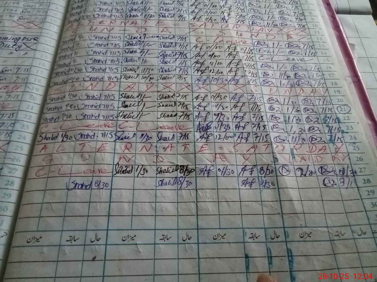 | Leave | Duty | Absent | Maternity | Medical | Ex- Pak |