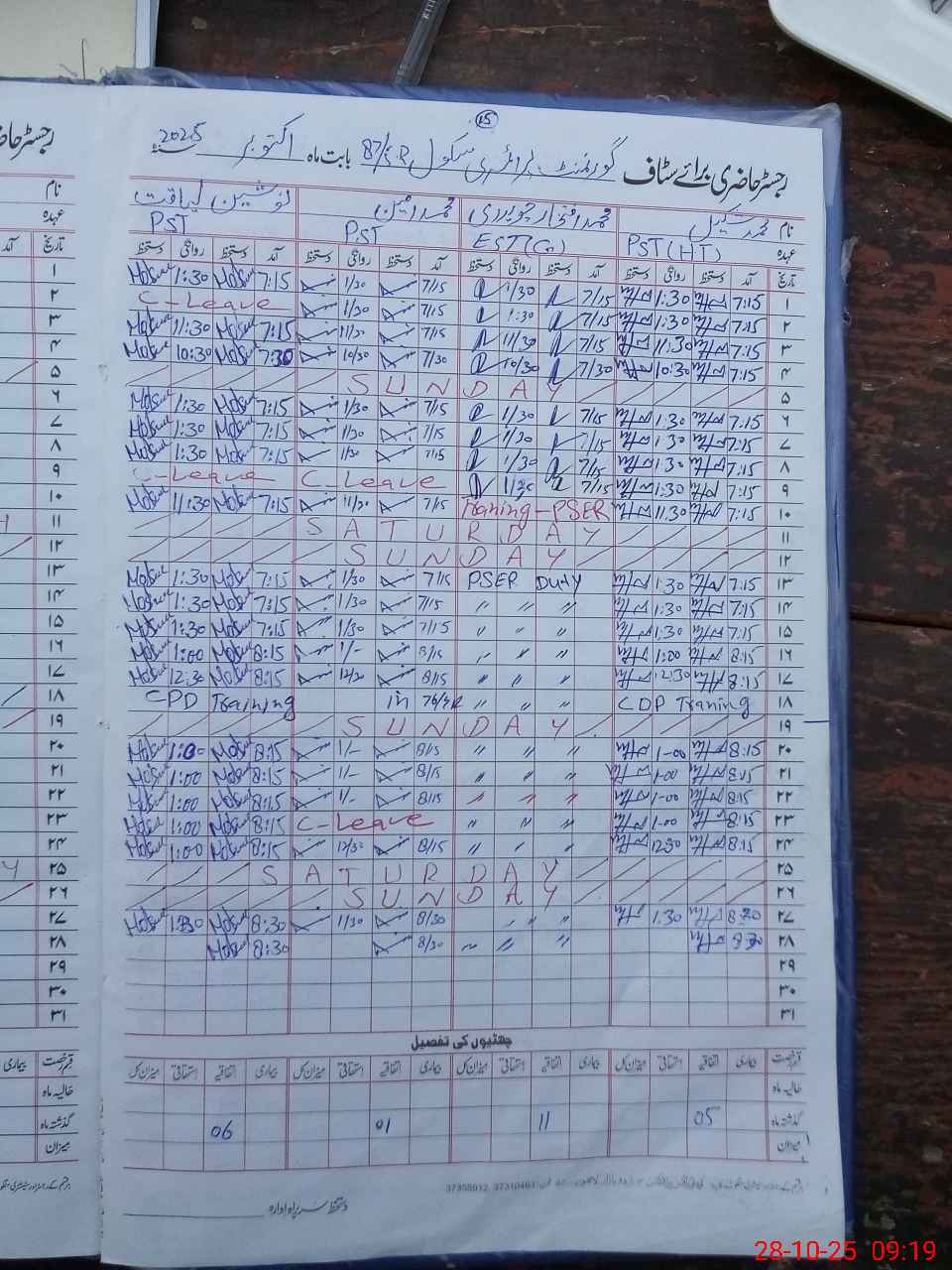 | Leave | Duty | Absent | Maternity | Medical | Ex- Pak |