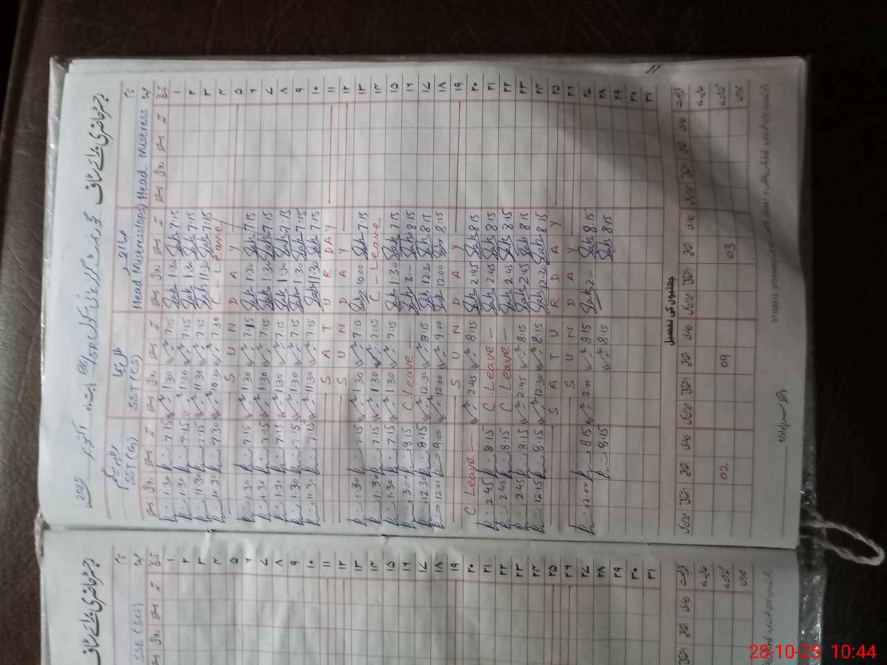 | Leave | Duty | Absent | Maternity | Medical | Ex- Pak |
