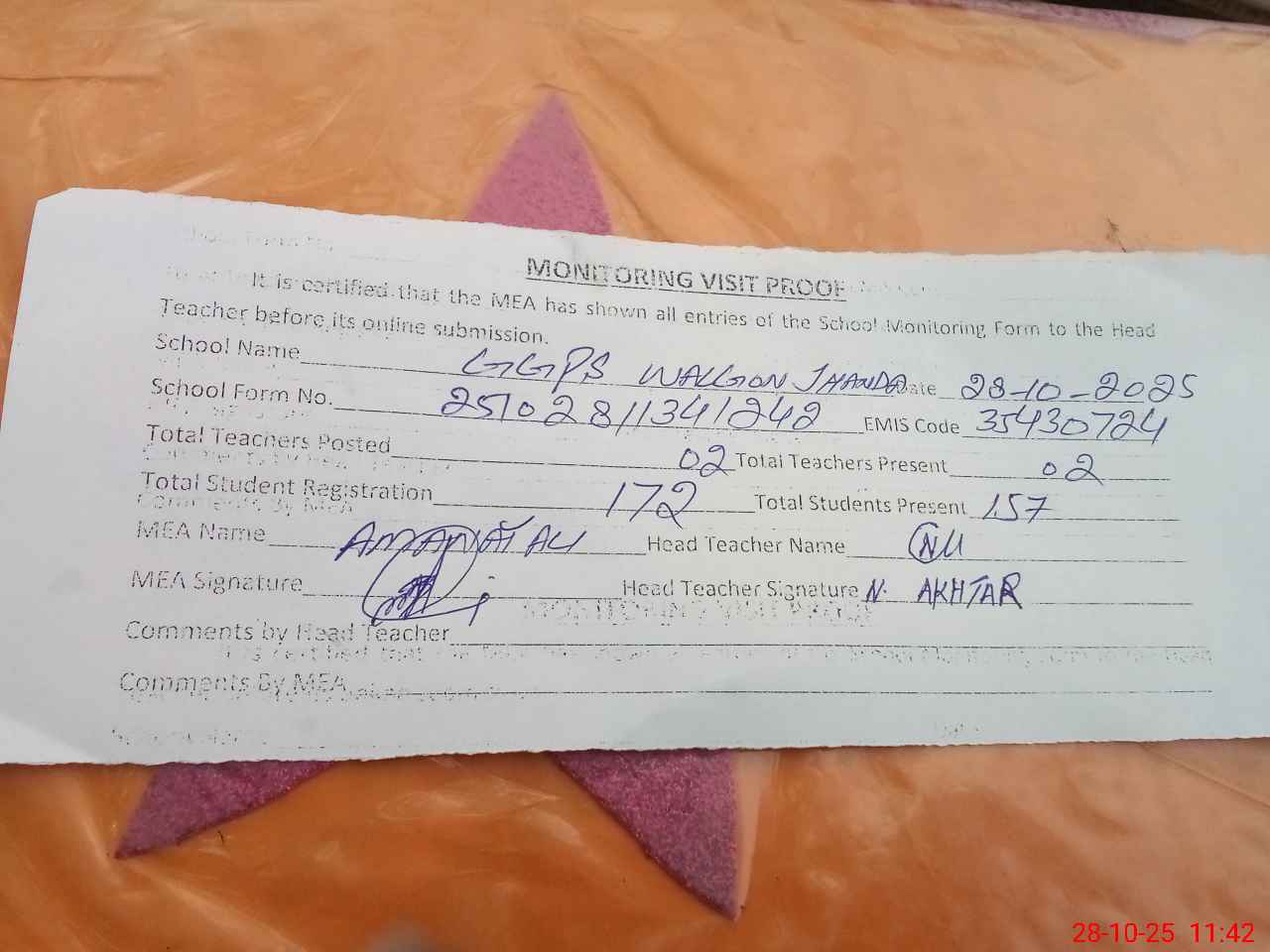 | EMIS Code: 35430724 | Name of School: GGPS WALGUN JHUNDA | |||
