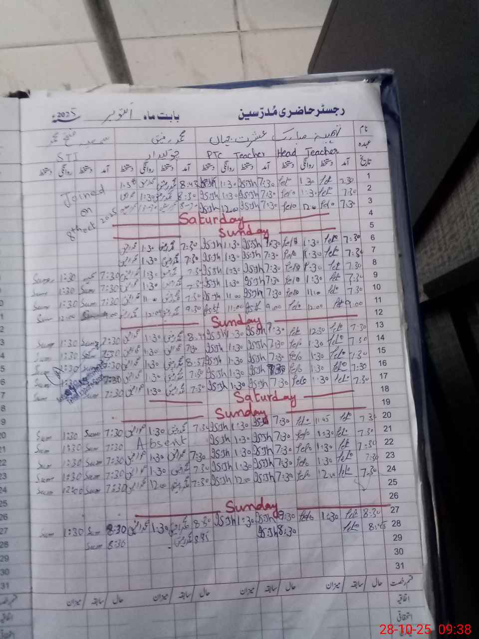 | CNIC | Full Name | Designation | R/C | Absence During Last Calender Month |