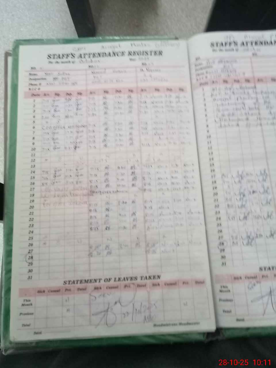 | Leave | Duty | Absent | Maternity | Medical | Ex- Pak |