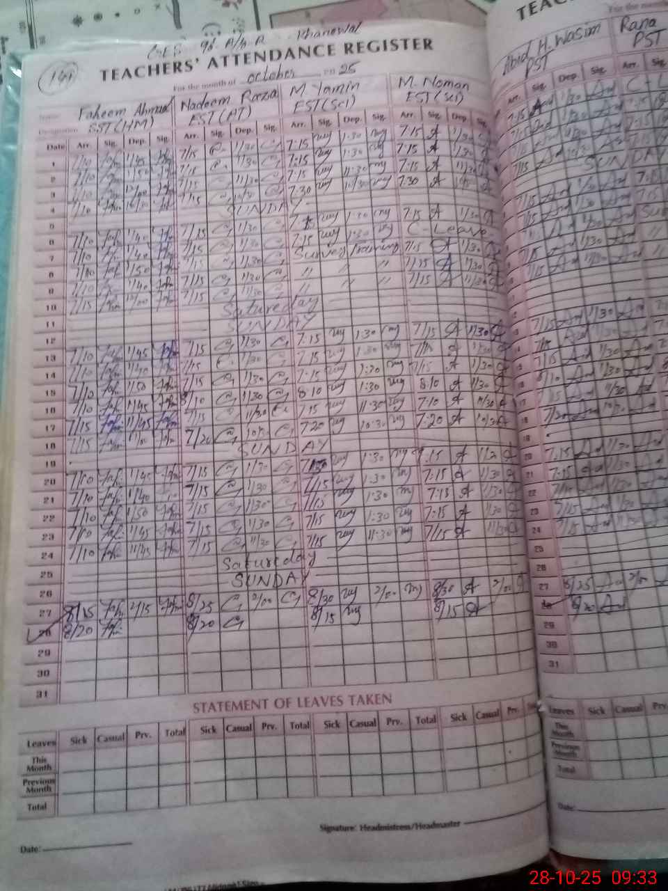 | Leave | Duty | Absent | Maternity | Medical | Ex- Pak |